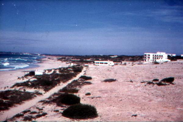 Am Mitjorn war es noch sehr beschaulich.Linkes Foto etwa von Mar y Land aus i. R. Hostal Maysi. Noch zu erkennen “Chiqos und Marias Strandbude” heute Bar Flipper. S´Arenal ist das
