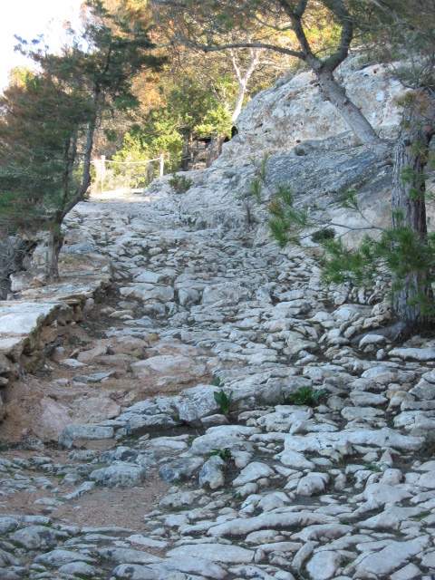 Hier hat es mich mitten ins Herz getroffen....... mein “Römerweg” das kann doch nicht sein gepflastert und vom Hostal Entre Pinos bis oben zum Anschluss an die Straße auf Autobreite gerodet und