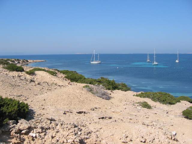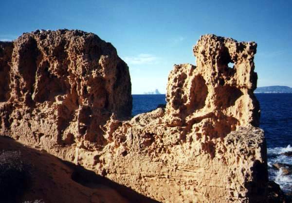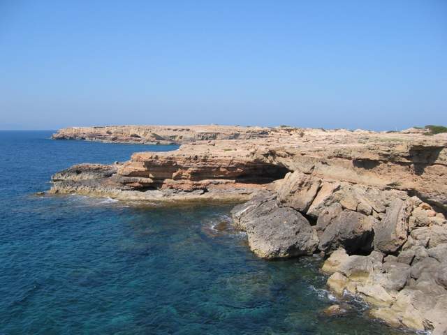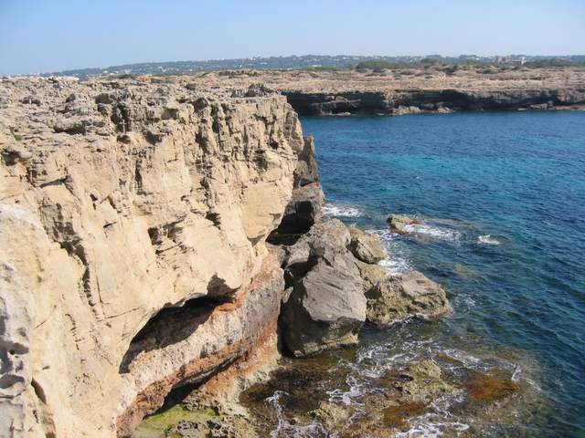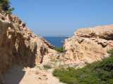 Schroffe Landzunge in Richtung Ibiza, über den Weg zum Porto Saler / Can Marriog
