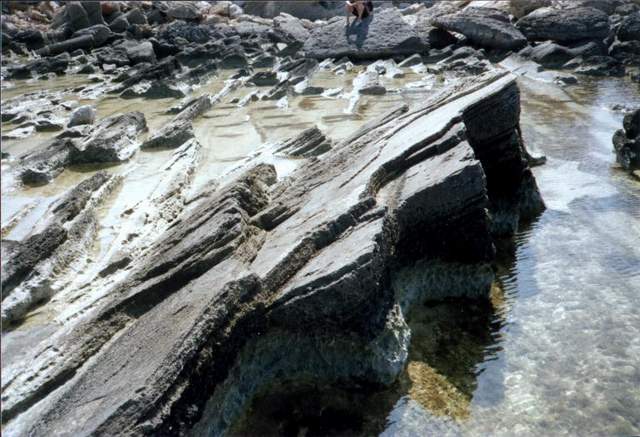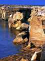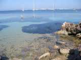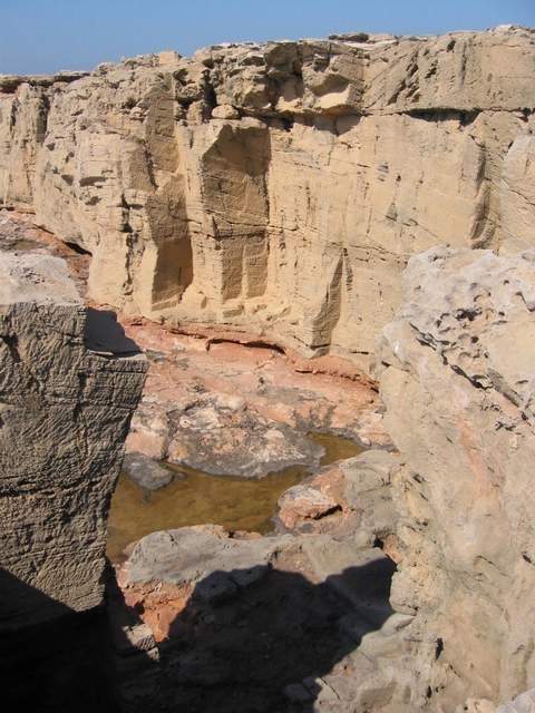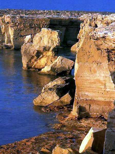 zu erreichen. Zur linken Seite, Seewärts gesehen, stellenweise recht steil abfallend. An vielen Stellen sind die markanten Spuren der alten Steinbrüche zu sehen. Zur rechten Seite, eher flach abfallend, ein schöner Ausblick i.R. Hafen. Bei ruhigem Wetter hat man wunderschönen Einblick in die empfindlichen Seegraswiesen die wir sonst nur als “Tang”
