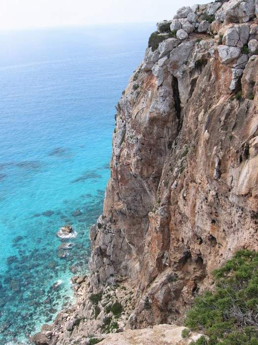 Zwischen den Felsen steil nach unten Fotografiert. Unten noch gerade erkennbar ein Auto (Tüv abgelaufen ;-)) ).