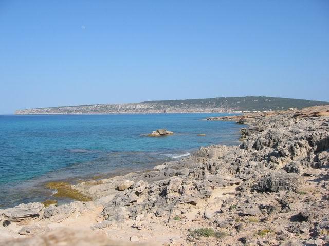 gelegen auf der gegenüberliegenden Inselseite des Mitjorn Strandes liegt der Küstenbereich der Es Carnatge, zwischen km 8 und 12. der Hauptstraße. Kein Traumstrand wie der des Mitjorn, eher felsige Abschnitte mit wenigen kleinen Buchten. Diese haben, je nach vorherigem Wetter, mehr oder weniger Sand. Ähnlich der