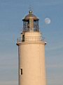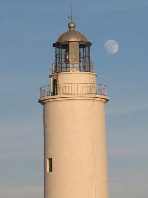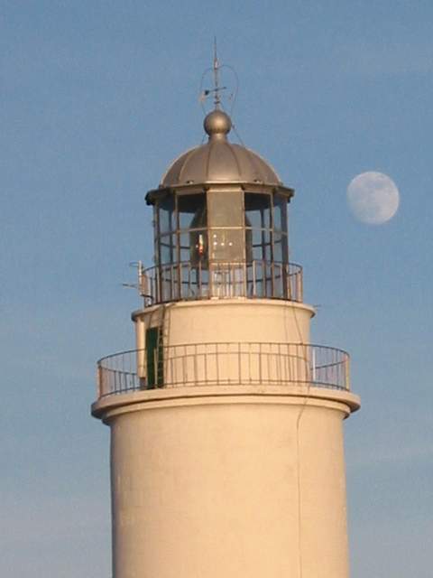 Die Sonne verabschiedet, der Mond begrüßt unseren Leuchtturm. Dieses Treffen fand am 28.12.2001 gegen 17.00 Uhr statt.