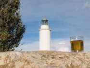 Leuchtturm am Morgen aus der “Höhle” darunter.
